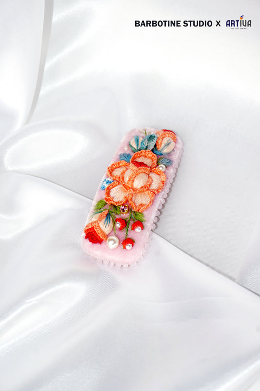 Barrette roses brodée à la main