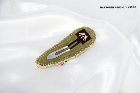 Barrette à cheveux perlée en broderie verte