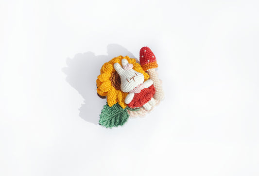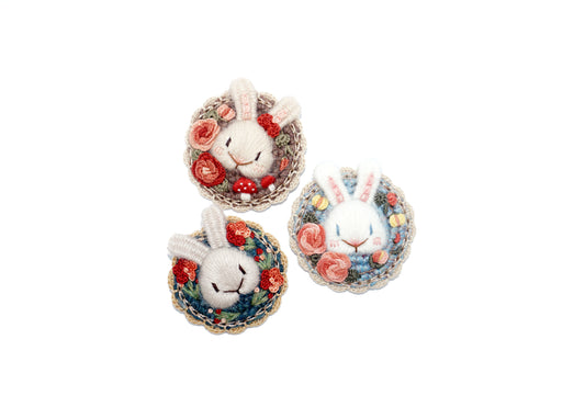 Broche lapin brodée et tricotée à la main