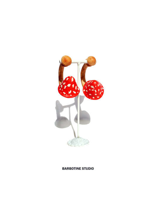 Boucles d'oreilles créoles - champignon rouge